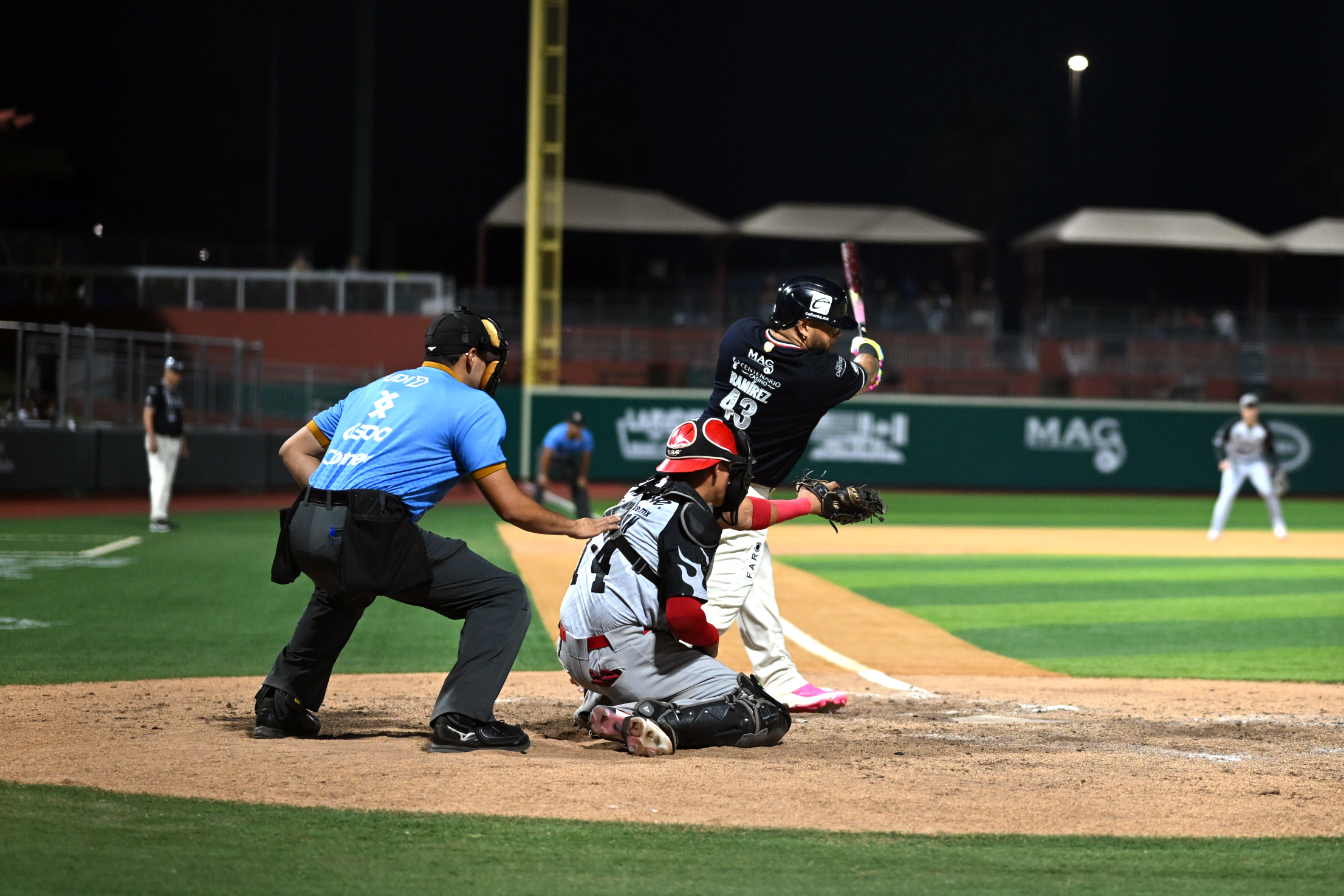 Para el segundo rollo, Caliente (28-42) movió el score 2-0. Ricardo Álvarez se voló la barda del jardín de la izquierda en solitario tras un out, enseguida Sabriel Polanco disparó triple al bosque derecho, y vía wild pitch de Jacob Nix timbraba también.